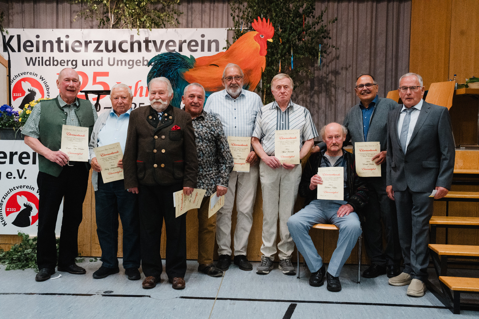 Mit der Gründungsfeier im Jahr 1900 galt es im Jahr 2025 eine große Feier auszurichten. Stolze 125 Jahre Vereinsbestehen, Mitgliederzusammenhalt und Zuchterfolge galt es am 24. Mai 2025 feierlich zu begehen. Besucher von nah und fern eilten zu unserem Vereinsjubiläum in die Schönbronner Halle um gemeinsam mit uns auf 125 Jahre Kleintierzuchtverein Wildberg anzustoßen und einen programmgeschmückten Abend zu verbringen.